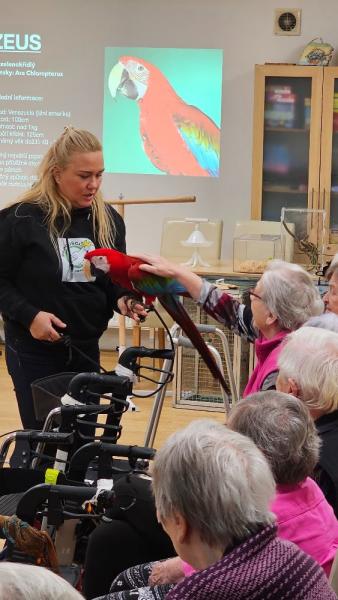 Dnes nás v Domově navštívili Papoušci a jejich svět s paní Marcelou Barborík. Představila nám všechny druhy svých papoušků, které chová. Přednáška byla velice zajímavá a naučná. Moc děkujeme Ježíškovým vnoučatům za tuto možnost.